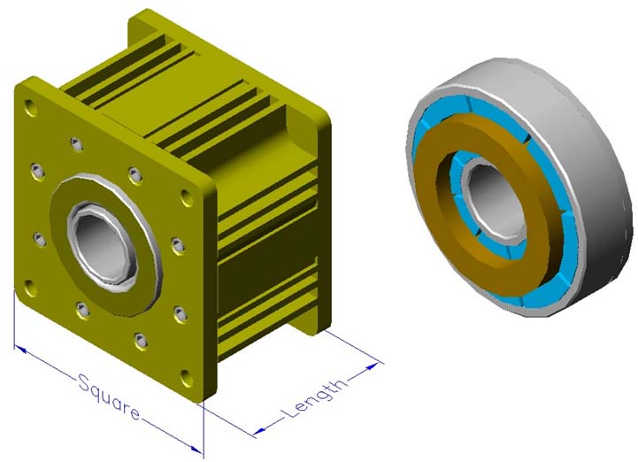 Housed slotless iron core brushless motors, radial, double winding, hollow shaft